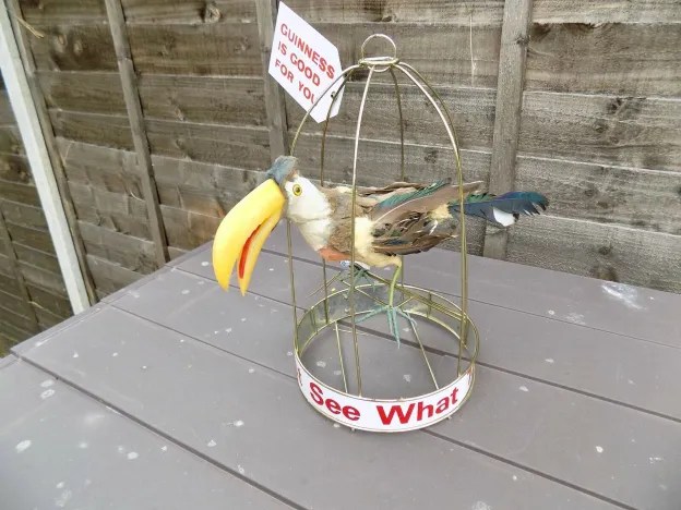 This Guinness flying toucan was an exterior decoration attached to a [closed in 2017] Irish Pub in New Zealand called Molly Malones. It was stolen, returned, and then auctioned by owners for charity. A few links on story & more pics, assuming they stay active: